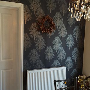 We have used this contrast wall technique using wallpaper in a variety of rooms: